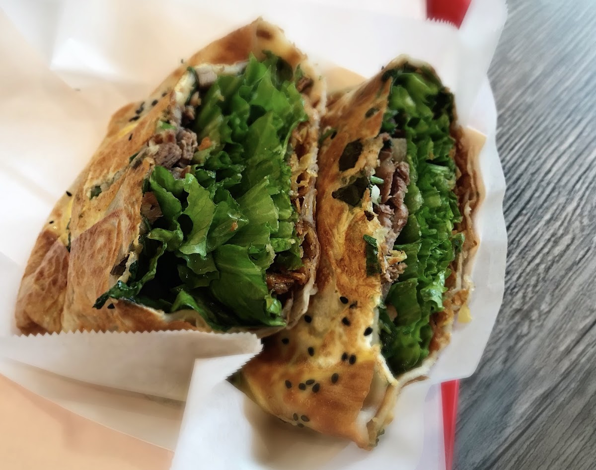 Jianbing is often described as a Chinese breakfast crepe, but that doesn’t quite do it justice. Food historians referenced by the Smithsonian have traced its origins back more than 2,000 years, noting how it evolved as a practical, nutrient-dense street food for soldiers. That history shows up here in subtle ways. The batter has depth, not just starch. The egg is evenly cooked, never rubbery. The crunch from the fried wonton layer is consistent edge to edge, something that’s harder to pull off than it looks. I asked one of the cooks about it, and they explained they control oil temperature carefully so the texture stays crisp without tasting greasy, which lines up with best practices outlined by culinary institutes like the Culinary Institute of America.